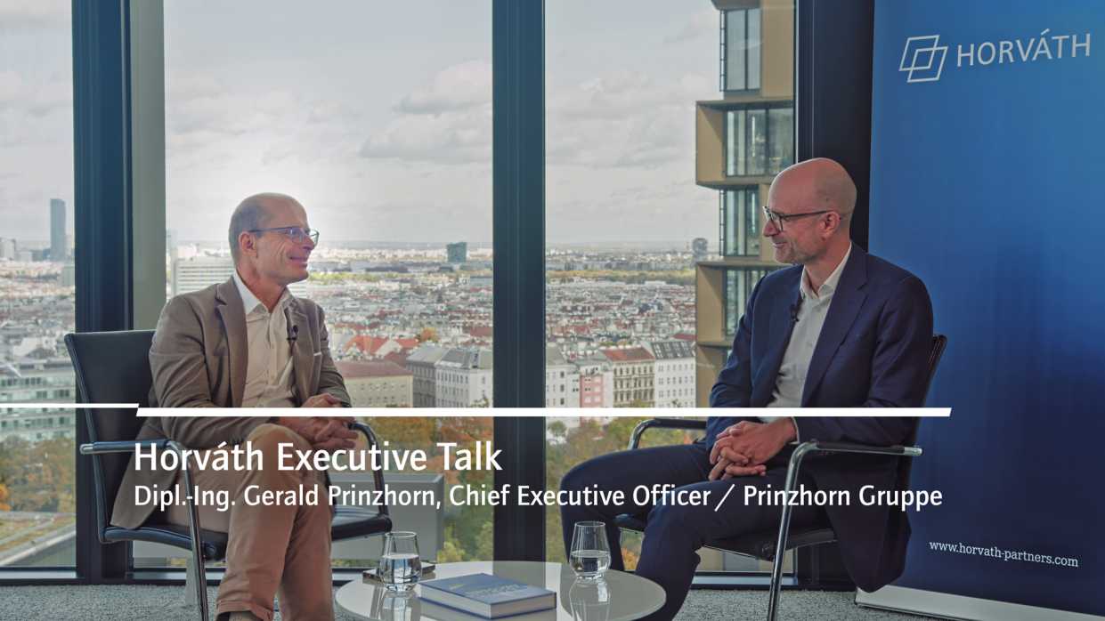 Die Prinzhorn-Gruppe zählt zu den führenden Unternehmen der europäischen Verpackungsbranche und steht für innovative Lösungen und nachhaltiges Wachstum. Doch was macht das Unternehmen – und die Führung dahinter – so erfolgreich? Im Rahmen unseres Gesprächsformats „Executive Talk“ hat Horváth Associate Partner Christoph Kopp mit CEO Gerald Prinzhorn über wirtschaftliche Entwicklungen, die Branche und seine persönlichen Erfahrungen gesprochen.
